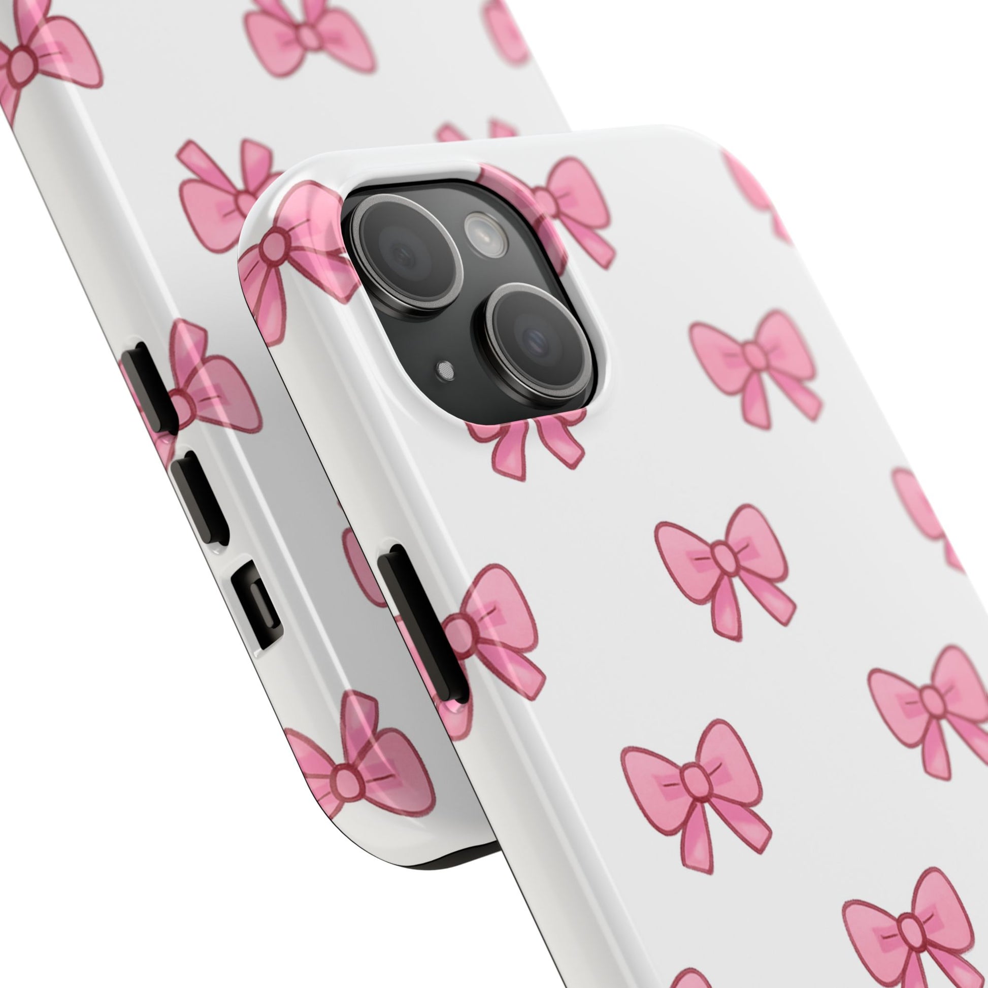 Protect your phone in style with this vibrant Tough Phone Case. Adorned with a playful pattern of pink bows, this case exudes a light-hearted vibe that brings a touch of charm to your daily routine. Perfect for those who appreciate a mix of fashion and functionality, this case is ideal for teens, young adults, or anyone wanting to add a pop of color to their tech. It’s a thoughtful gift for birthdays, holidays, or just to brighten someone's day. Elevate your phone game while ensuring it stays safe from everyday bumps and scrapes!